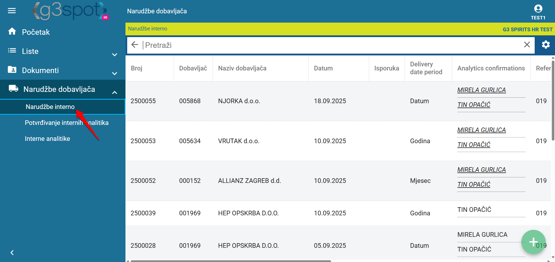 Kad se prijavimo u spot imamo mogučnost unosa narudžbe interno.