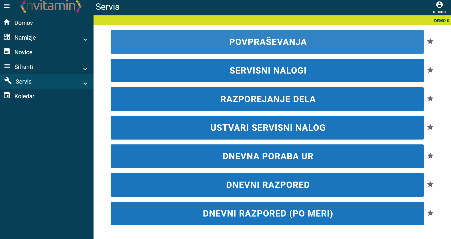 V tem pogledu pa lahko ustvarimo servini nalog za določeno stranko. V tem koraku vnašalec razporedimo serviserja. Dodelimo mu lokacijo, dan na katerega naj opravi servis. Določimo še vse potrebne ostale parametre in servisni nalog zaključimo s potrditvijo na zelenem gumbu zgoraj. Servisni nalog bo tako oddan v sistem servisnih nalogov in bo viden serviserju v modulu nVitamin Moj servis ob prijavi. V modulu nVitamin moj servis lahko delavec, ki je bil dodeljen na določeno delo, nalog odpre, pregleda in ga ob pričetku dela aktivira.