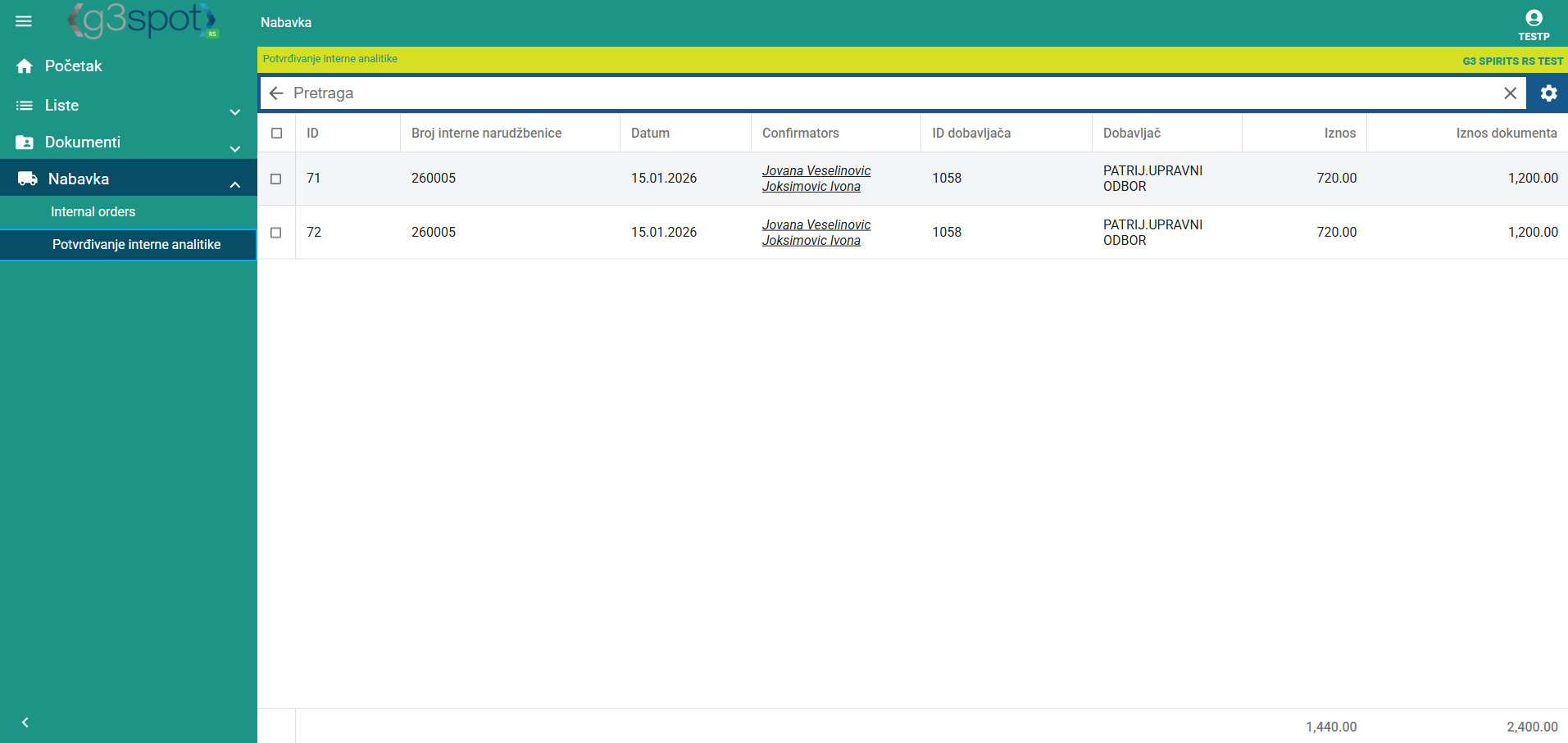 Interne narudžbe za potvrdu